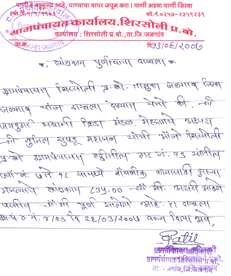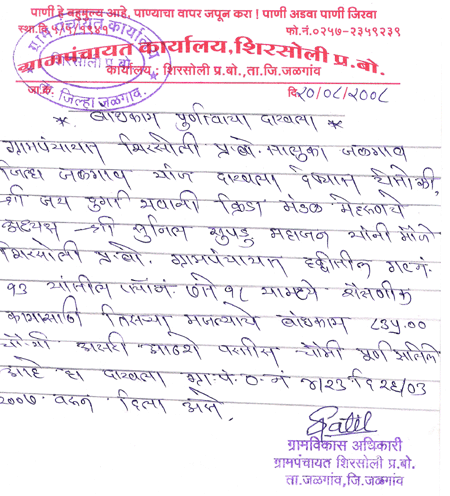 Completion Certificate from Gram Panchayat , Shirsoli P.B.